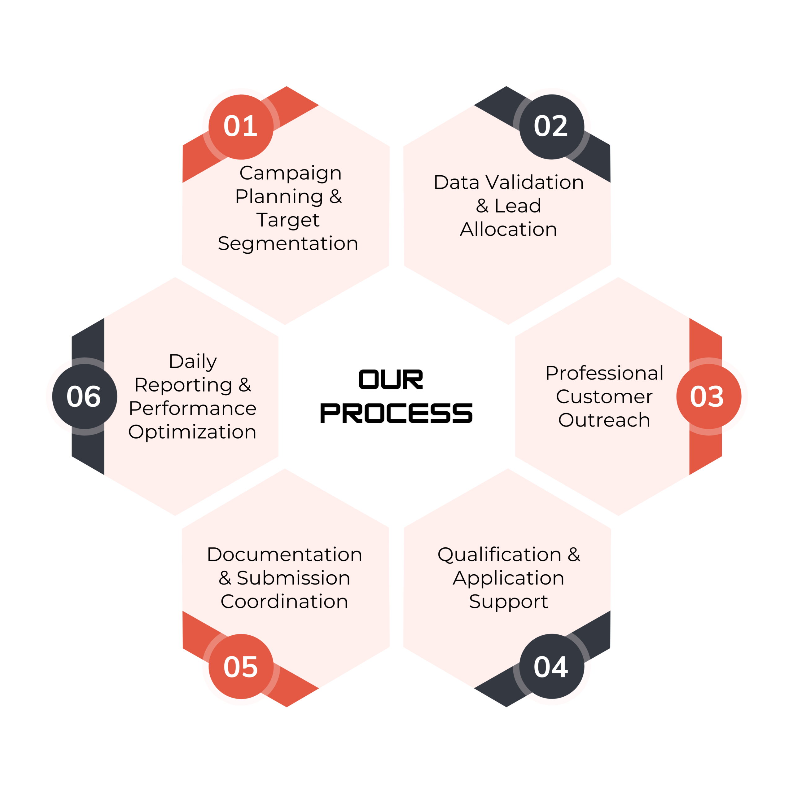 At SSK Global Business Solution, we follow a structured and efficient workflow designed to deliver reliable outsourcing support and measurable results. Our process begins with understanding client goals and planning targeted campaigns to reach the right audience. We then validate data carefully and assign leads to trained professionals who engage with customers through clear and professional communication. Genuine prospects are guided through qualification and application stages, while our team manages documentation and submission with accuracy and compliance. Throughout the process, we provide regular reporting and continuously optimize performance to ensure better outcomes, transparency, and long-term business growth for our clients.